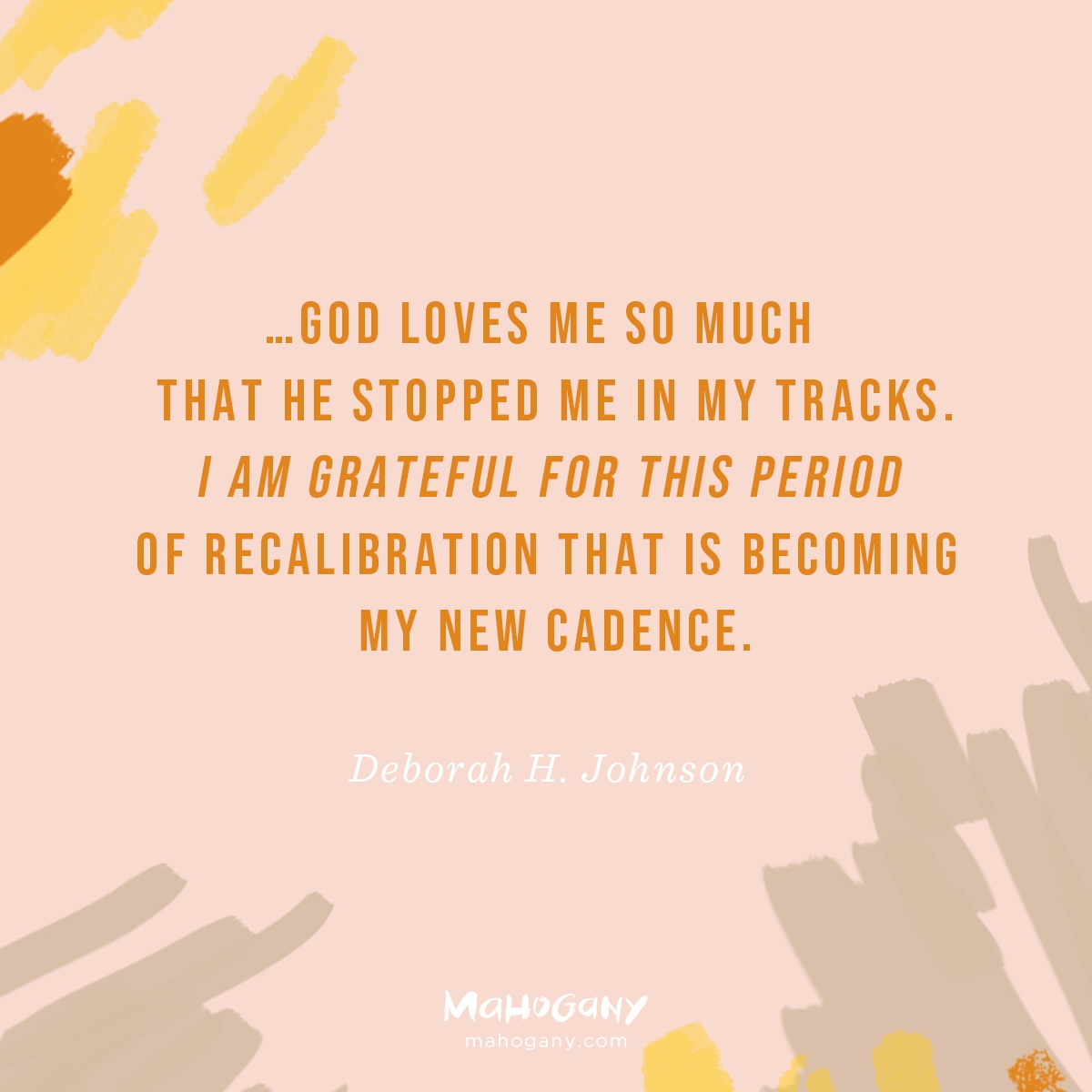 opportunity to slow down on my own, was now taking the reins and reeling me in.”