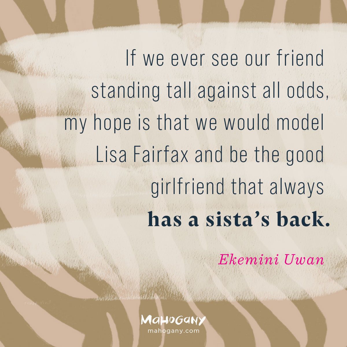 My hope for those in the latter category is that you too would experience the glory of Black sisterhood. I pray that bearing witness to the sisterly affection displayed between Justice Ketanji Brown Jackson and Lisa Fairfax serves as a whisper of a prayer to God, who grants good gifts like friendship to His children. And if we ever see our friend standing tall against all odds, my hope is that we would model Lisa Fairfax and be the good girlfriend that always has our sista’s back. After all, we are our sister’s keeper.