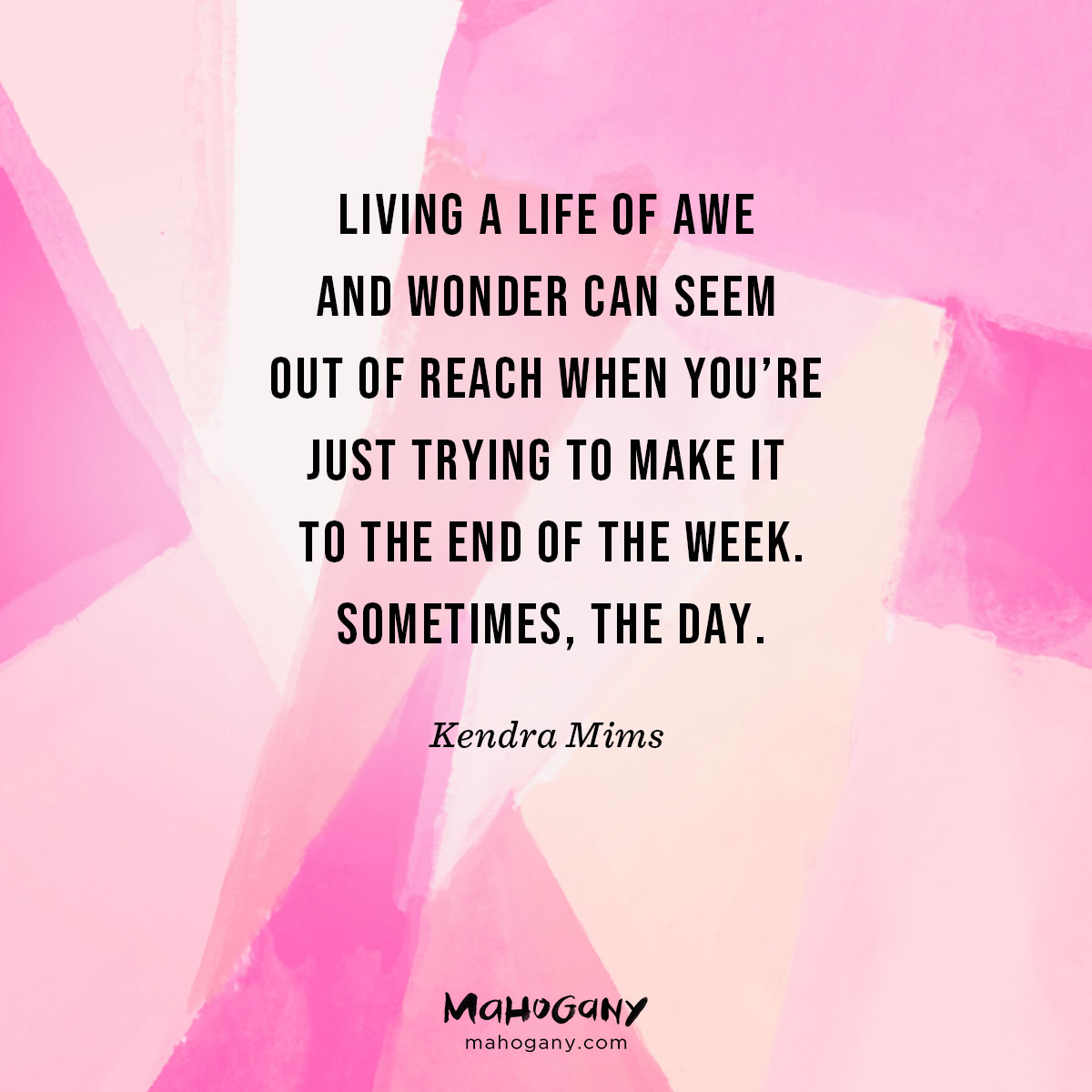 As we navigate adulthood, the art of wonder can get lost in the shuffle, especially when life happens. We juggle busy schedules and wear multiple hats that demand our full attention. We become bogged down and burnt out from the day-to-day, overwhelmed with never-ending to-do lists and underwhelmed with mundane routines. We’re fighting to maintain our faith and keep our eyes on the prize when the unexpected happens and circumstances change without our permission. Living a life of awe and wonder can seem out of reach when you’re just trying to make it to the end of the week. Sometimes, the day.