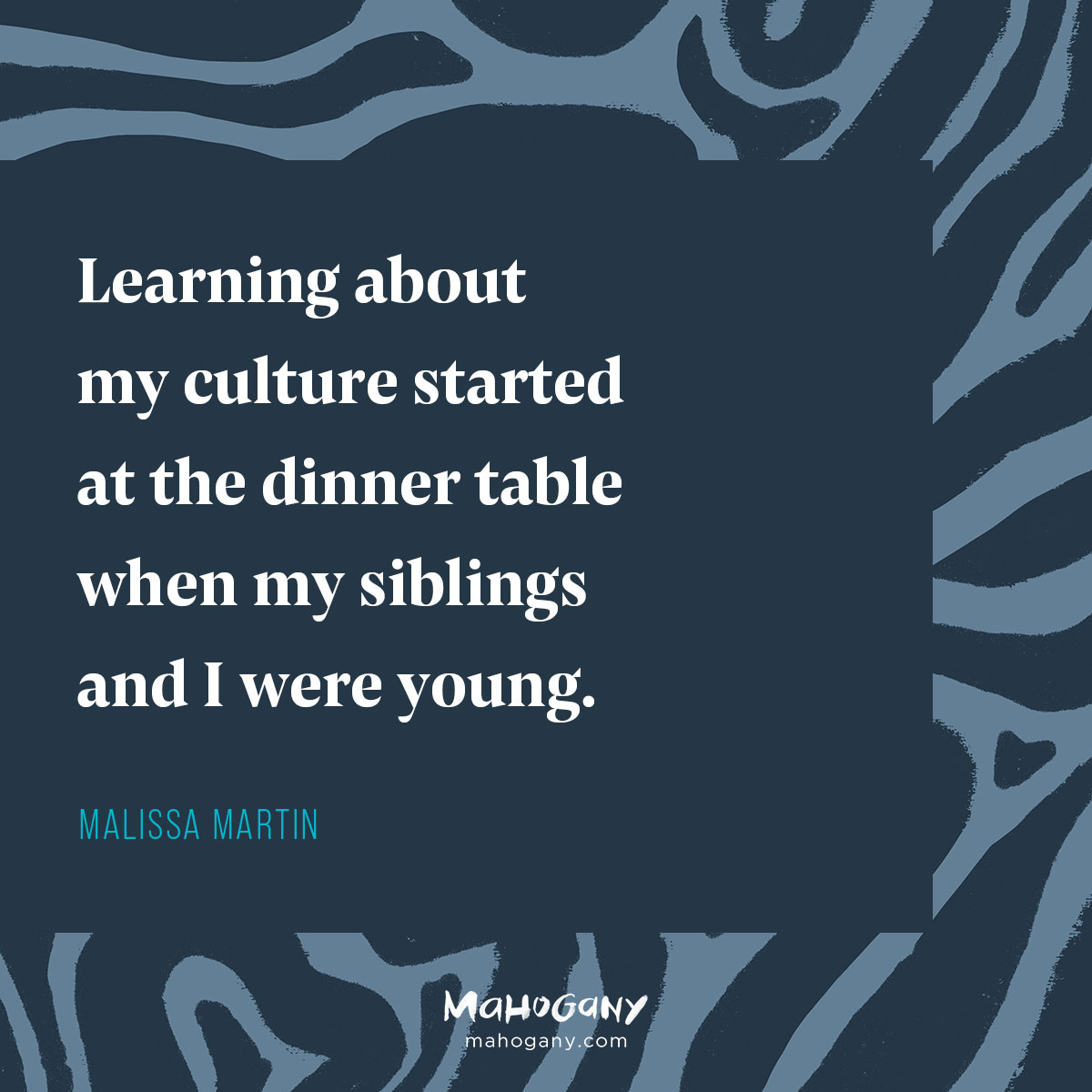 Learning about my culture started at the dinner table when my siblings and I were young. My father poured our history into us. Today I still listen to Caribbean music, have friends in Antigua, cook our family recipes, and more. Had it not been for my father intentionally educating us on our culture we would not know or appreciate its deep roots that connect us no matter the distance.
