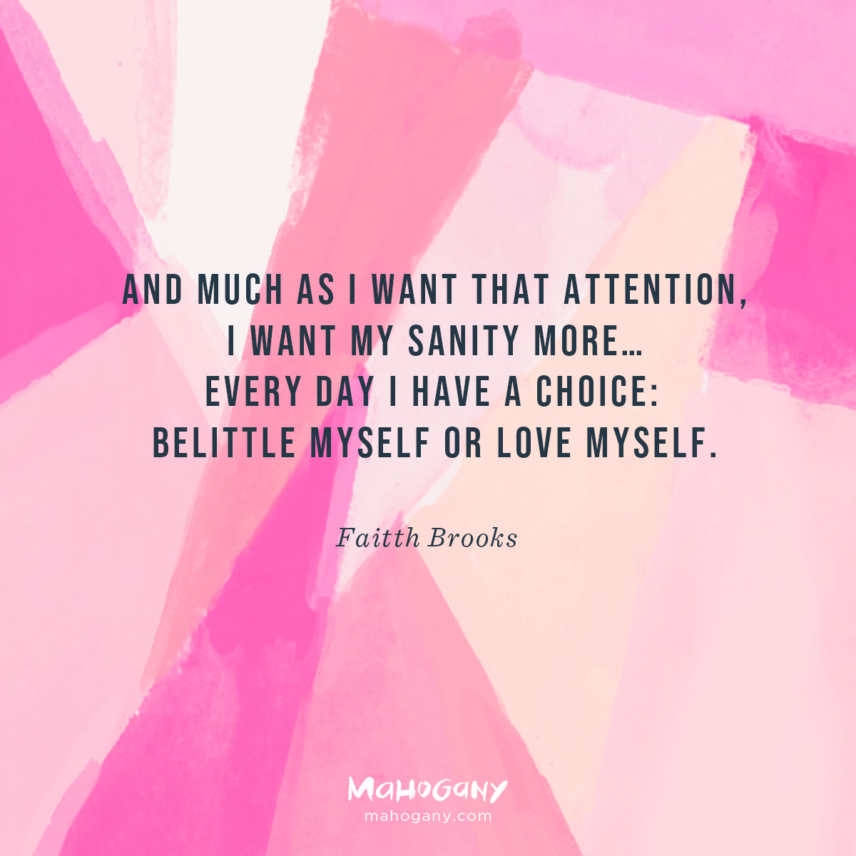 Some days, I desperately want to be you. I want to be skinnier—want the attention, to be desired like you… But there is one problem: I can’t be. No matter how much I run, eat right, or dress well, I won’t be you. And much as I want that attention, I want my sanity more. Every day I have a choice: belittle myself or love myself.