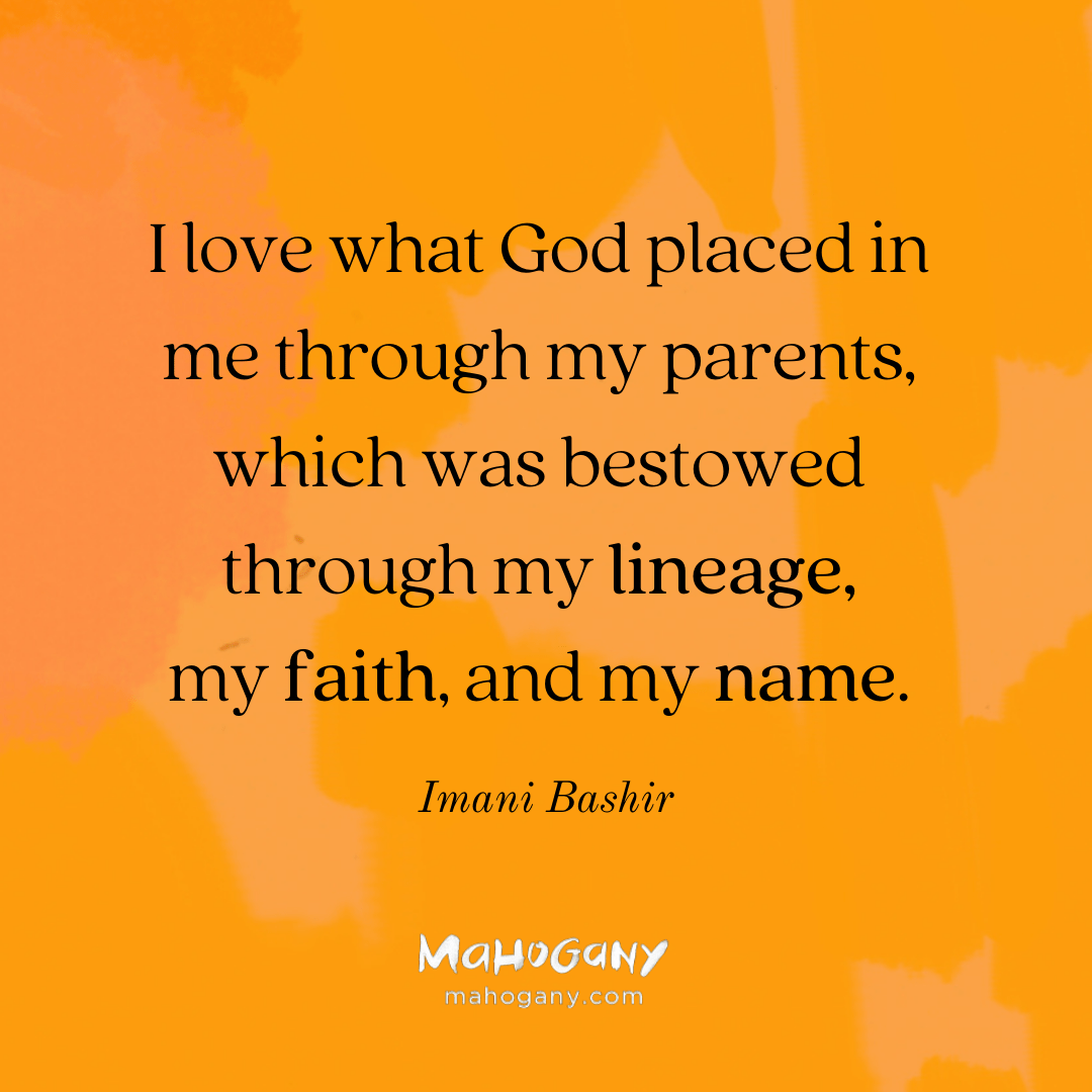 I had to be the one to decide: either stand in my identities and own them or discard them and create anew. I love what God placed in me through my parents, which was bestowed through my lineage, my faith, and my name. So, that’s what I chose. Getting to that place was my own journey—one of many. There’s no better self-love than pride in identity and all the uniqueness that makes you, you!