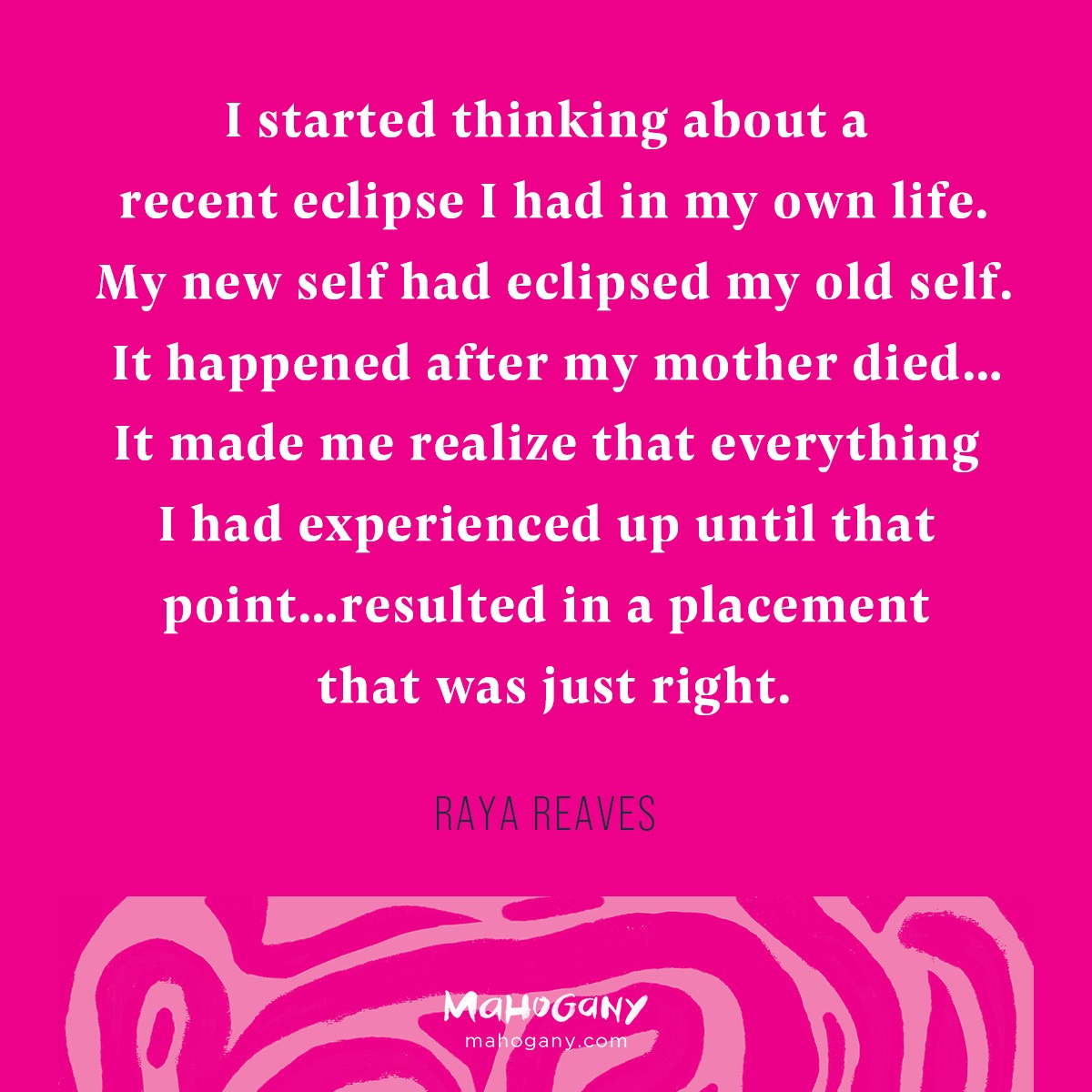 I started thinking about a recent eclipse I had in my own life. My new self had eclipsed my old self. It happened after my mother died. I even talked about it in detail in the article Not a New Chapter, a New Book. It made me realize that everything I had experienced up until that point and everything that led me to where I was resulted in a placement that was just right.
