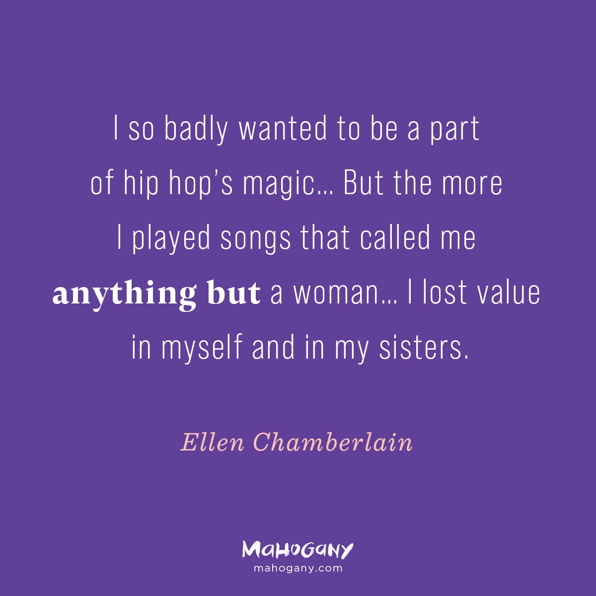 I so badly wanted to be a part of hip hop’s magic. I’m nobody’s rapper and never wanted to manage anyone’s career other than my own, but I knew I could play the music and connect with the people. But the more I played songs that called me anything but a woman and only valued my anatomy or my proximity to a man, the more I lost value in myself and in my sisters.