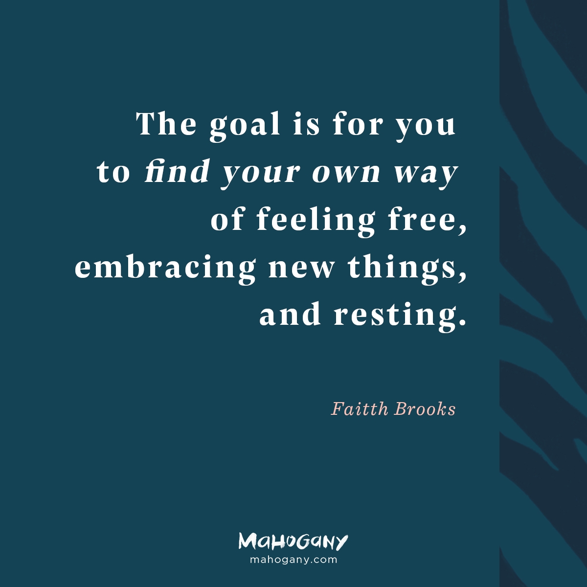 The goal is for you to find your own way of feeling free, embracing new things, and resting. So, take a deep breath, close your eyes, and commit to making space for you—space where you can come alive.