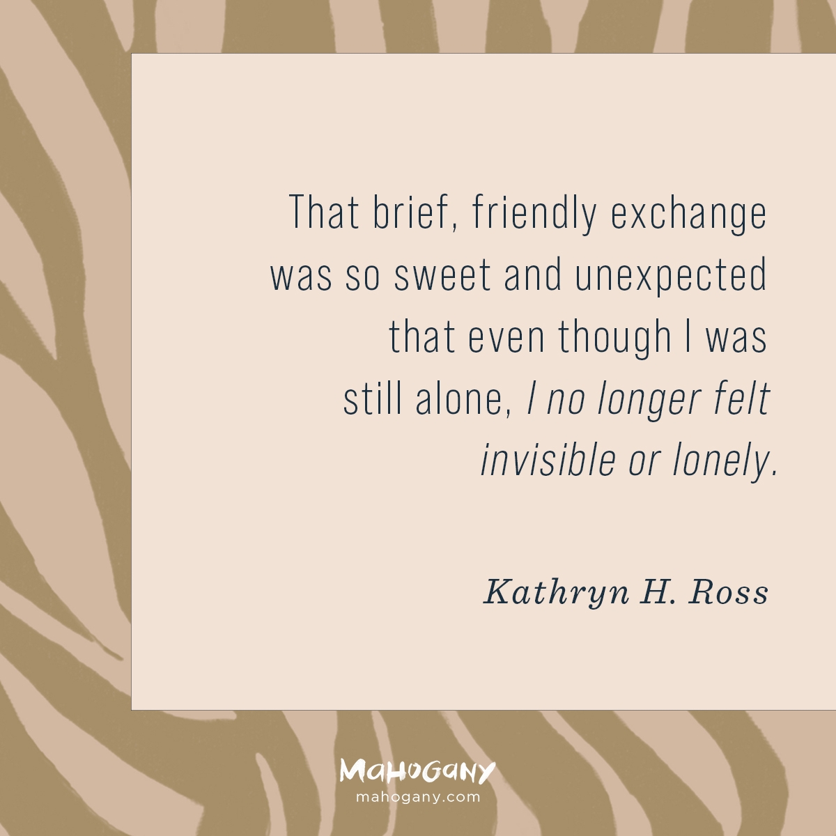 1. This Mahogany moment was delightful & insightful. I am an extrovert by nature & do this type of thing often & I am convinced git uses these interactions, to uplift encourage & break the chains of isolation & loneliness we’ve weaved around ourselves in today’s too busy world. Your words of wisdom are pearls to me! Thank you for sharing this powerful message Ms. Kathryn H. Ross