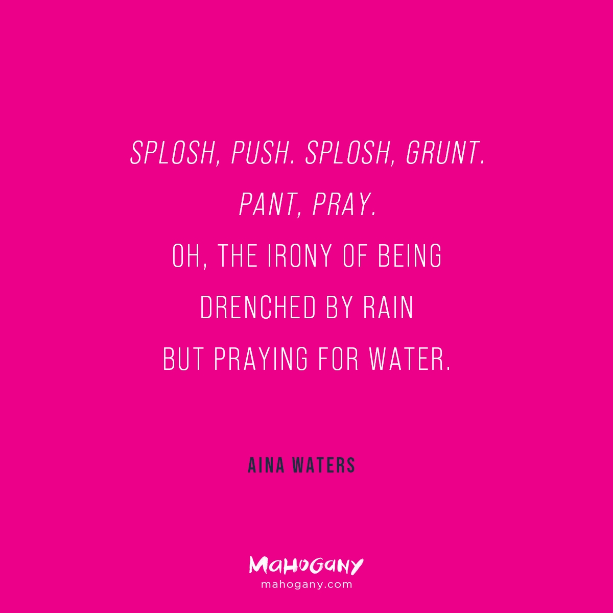 For several hours, in the rain, we treaded through the muddy ocean floor… Splosh, push. Splosh, grunt. Pant, pray. Oh, the irony of being drenched by rain but praying for water.