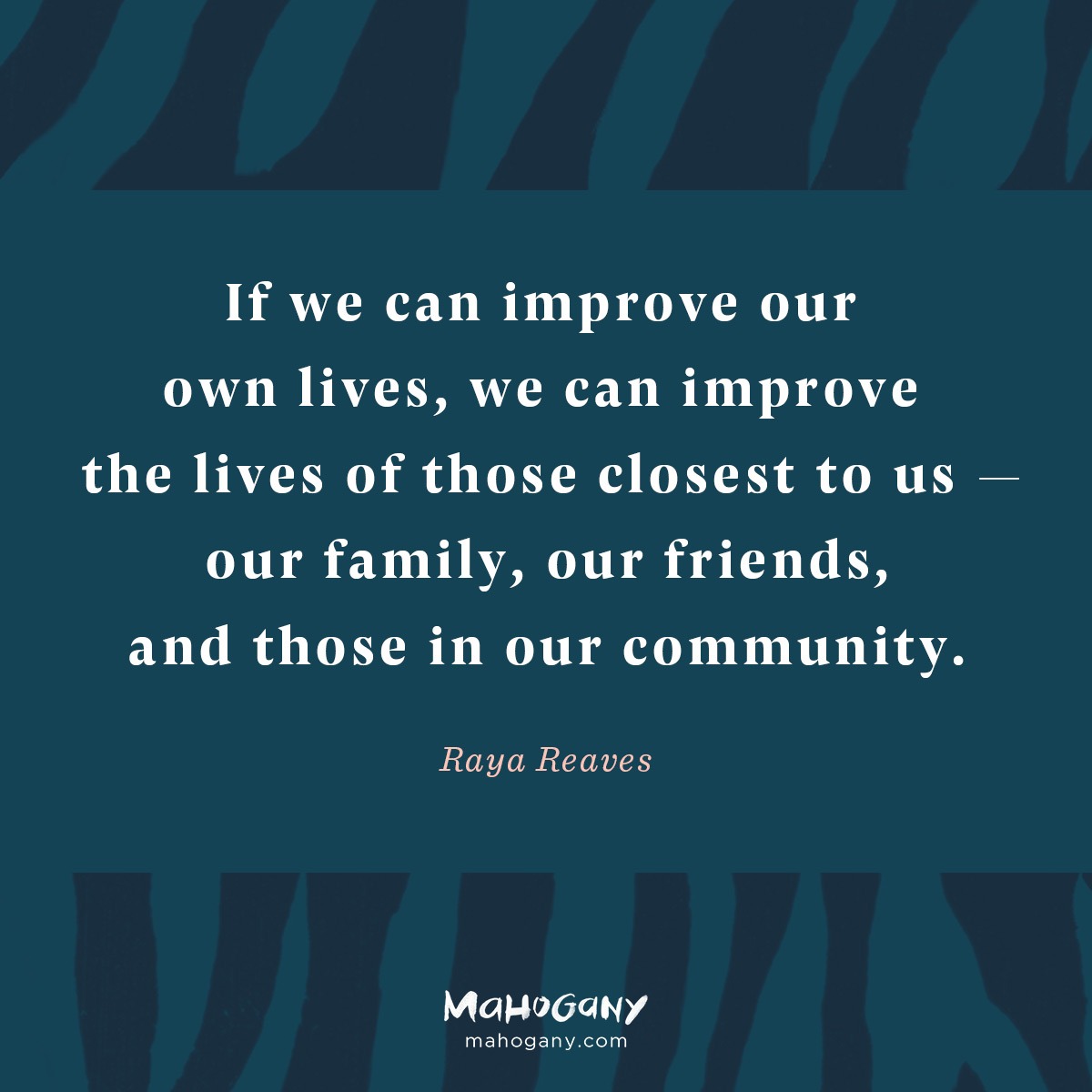 If we can improve our own lives, we can improve the lives of those closest to us — our family, our friends, and those in our community.