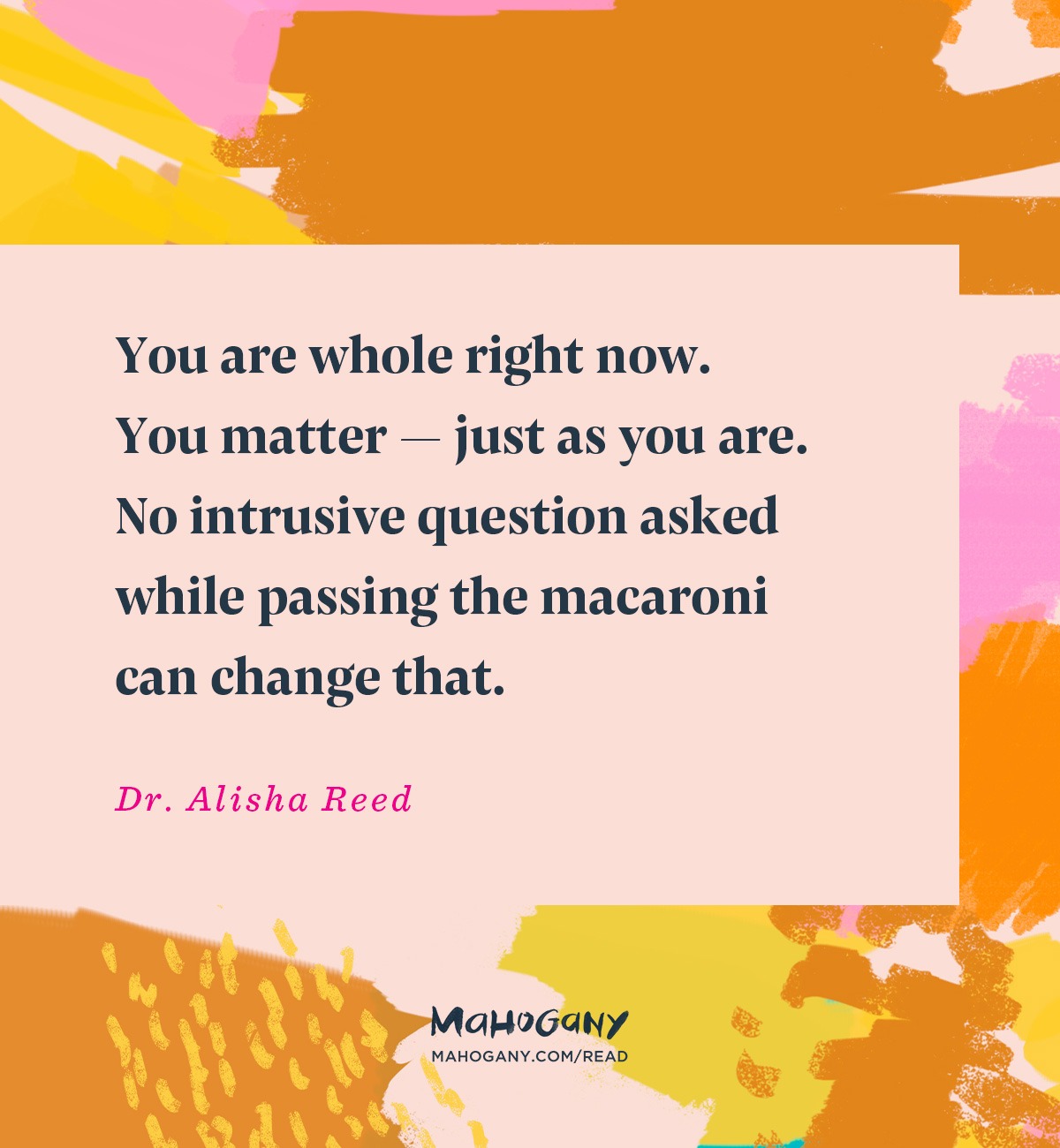 And you are whole right now. You matter — just as you are. No intrusive question asked while passing the macaroni can change that.